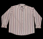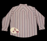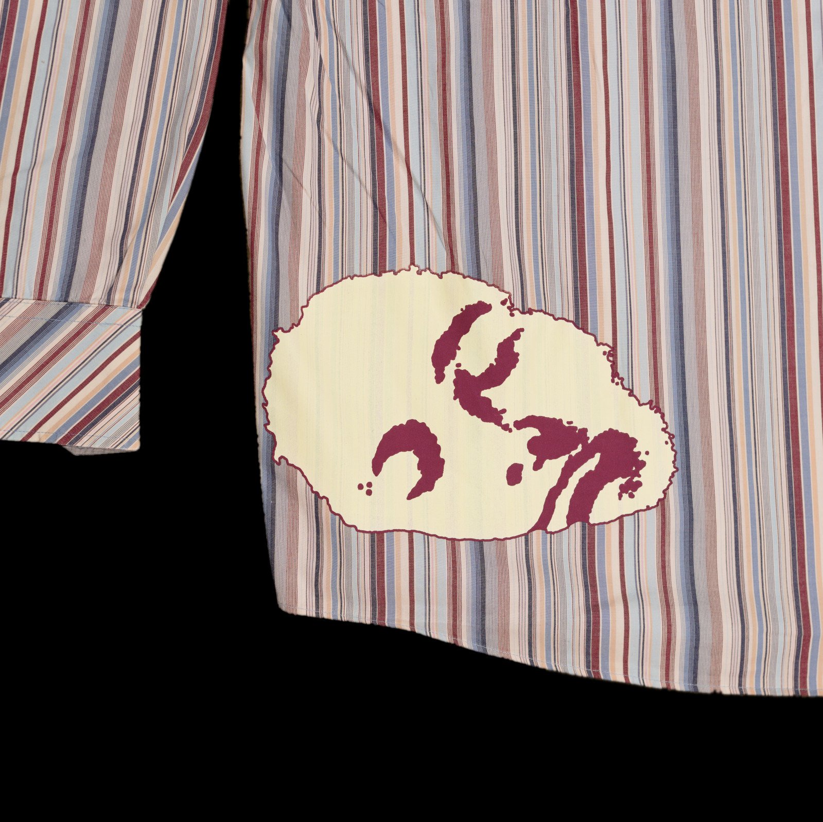 Second-hand striped shirt, screen printed on the back.