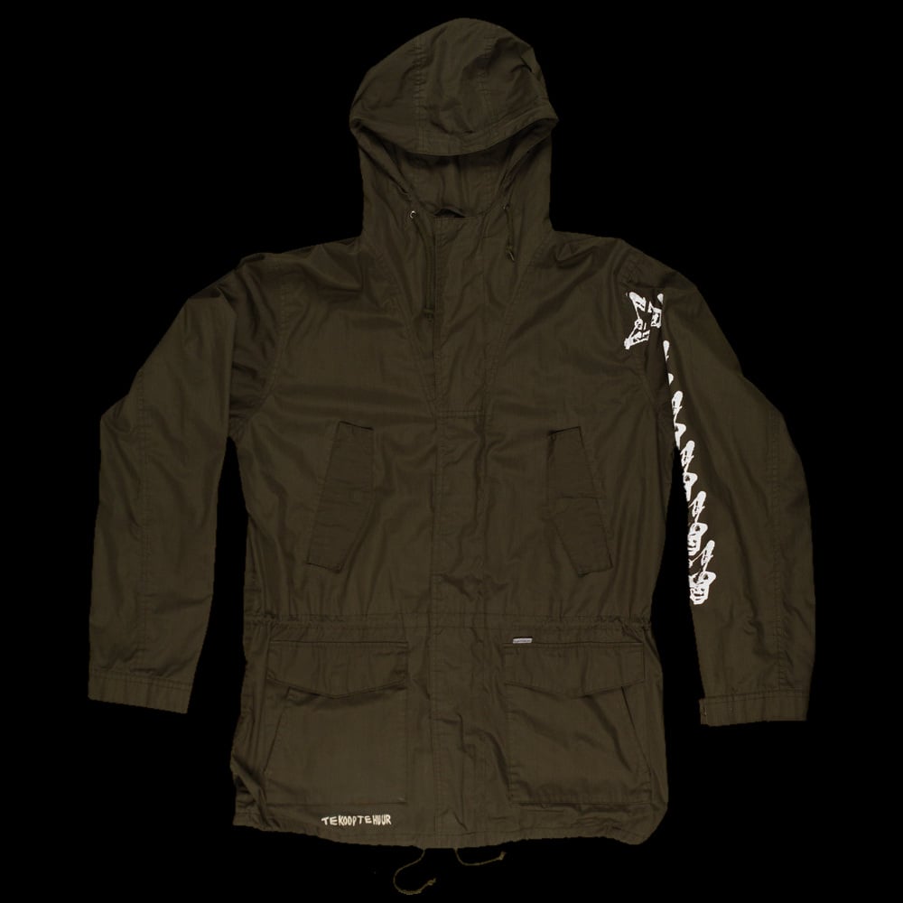 Second-hand Carhartt parka, screen printed on the back and on the left arm.