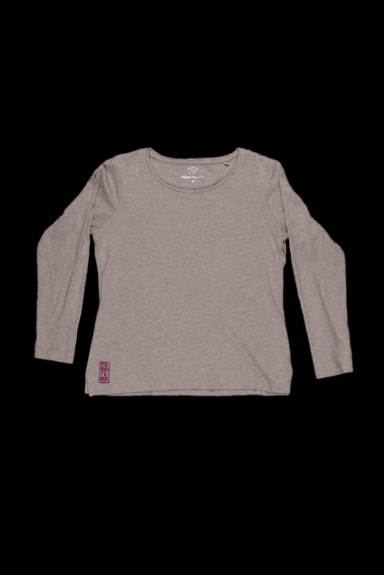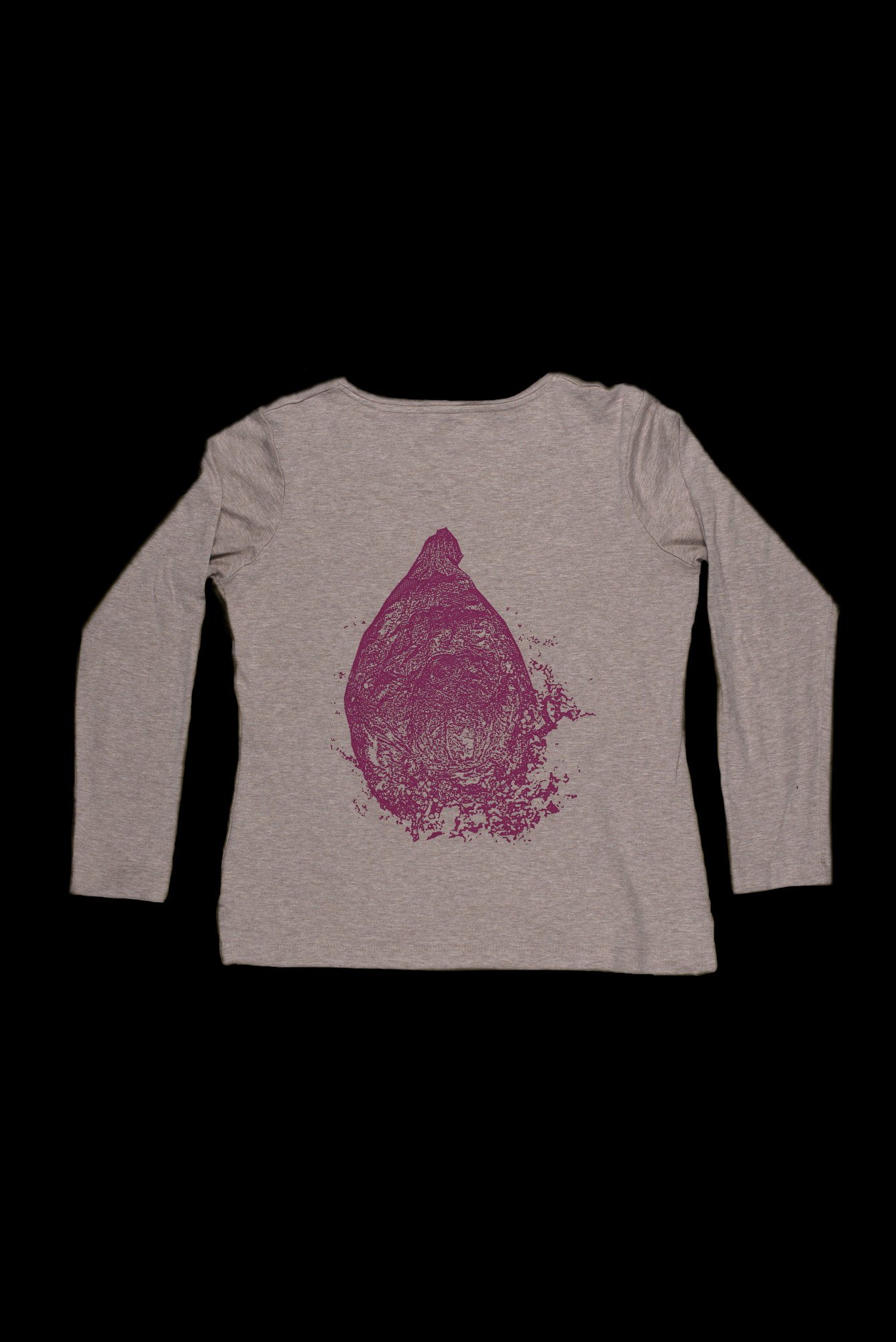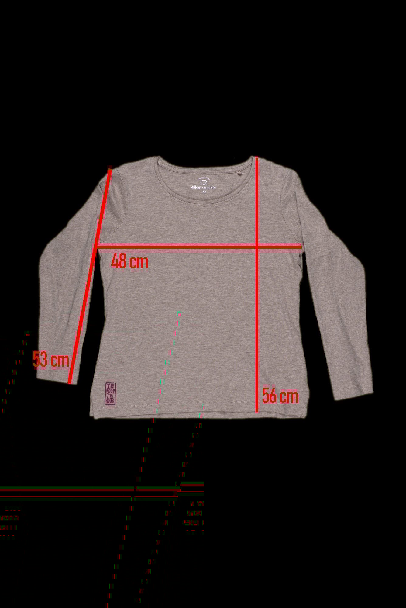Second-hand organic pima cotton long sleeve, screen printed on the back.